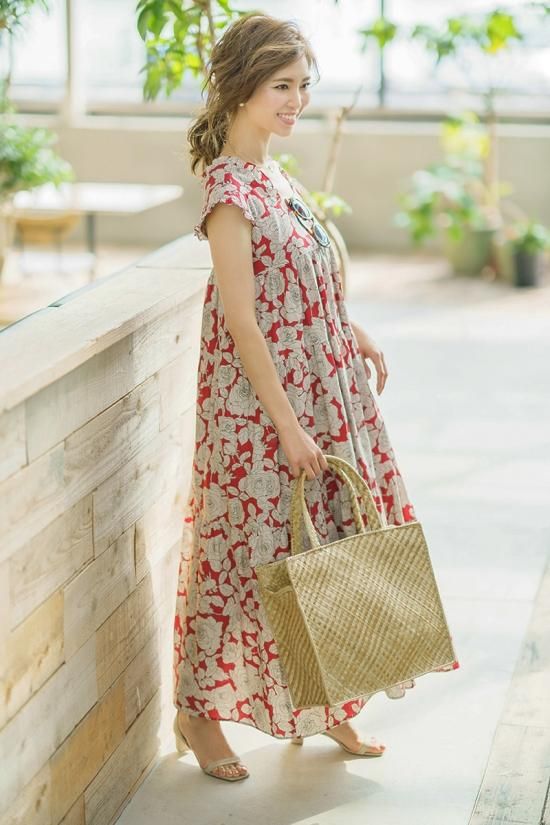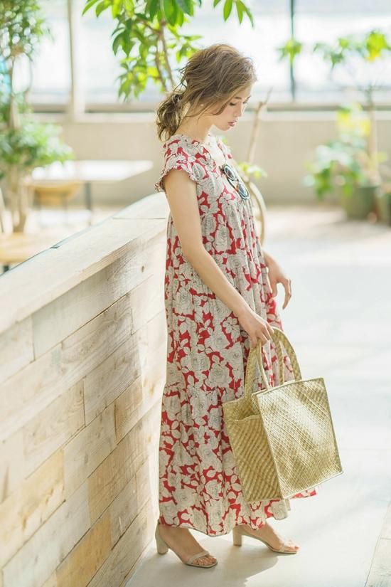 モデルコメント: マキシ丈で着られバストは少しゆとりのある着用感。バストが大きめの小柄な方にもおすすめのサイズ。