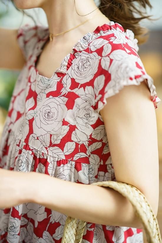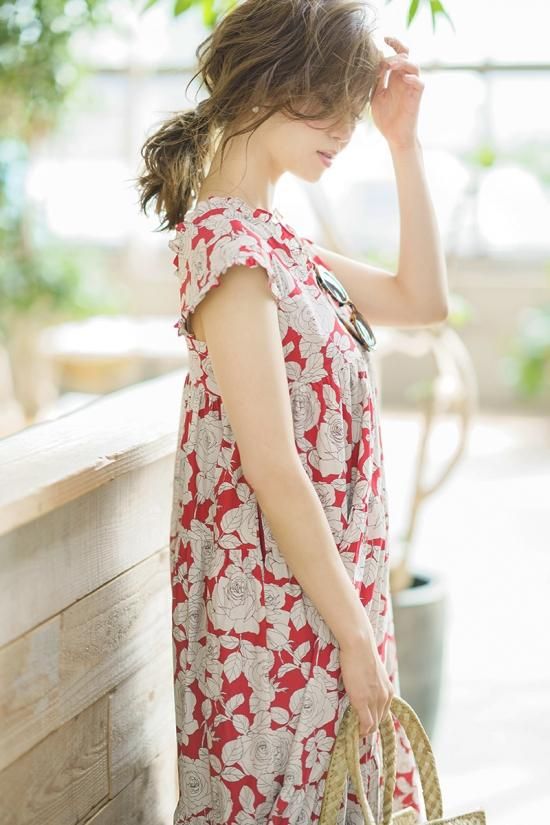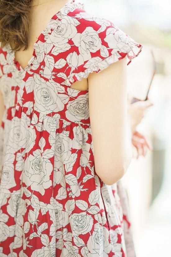 胸下からはティアードなのでぴったりしすぎずに夏でも快適にお過ごしいただけます。