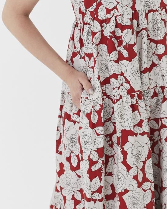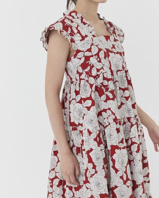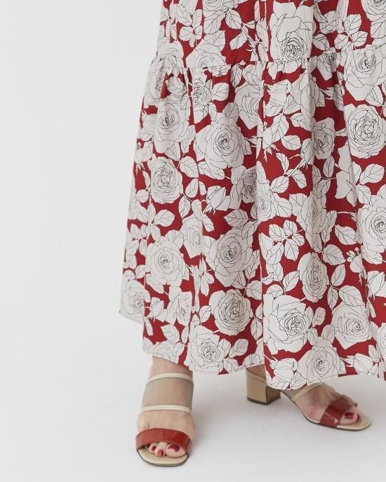 ヴィンテージのバラ柄にSEVEN TEN by MIHO KAWAHITO オリジナルカラーをほどこしたプリントドレス。