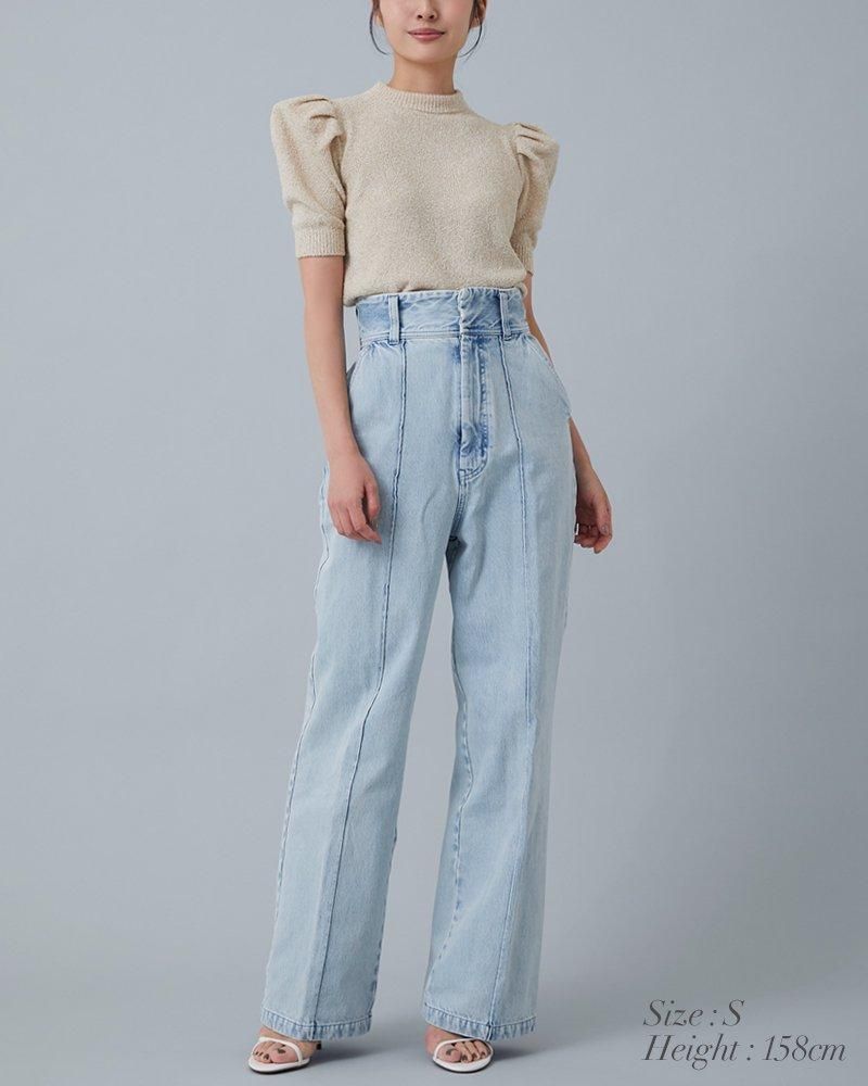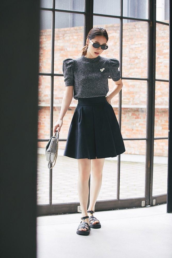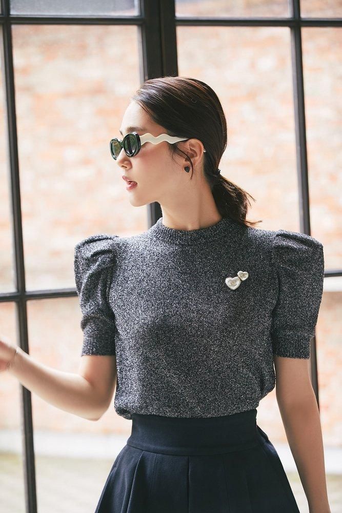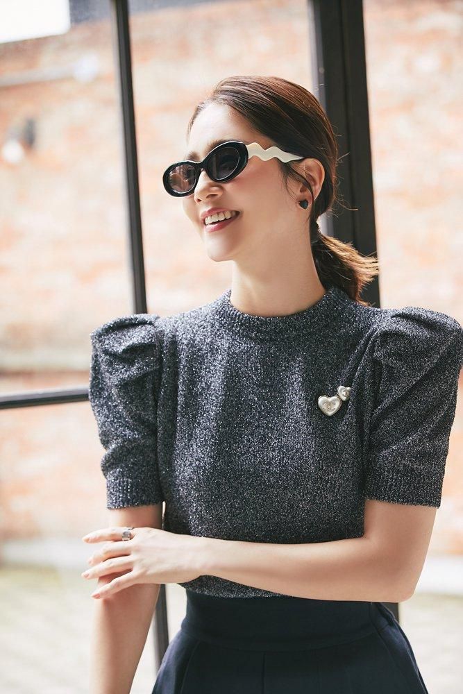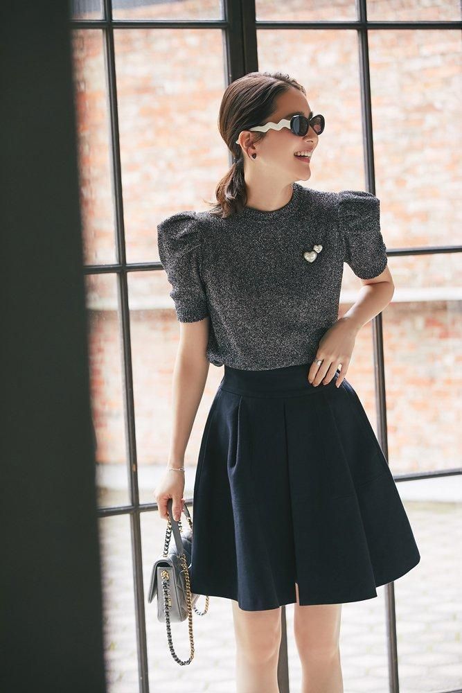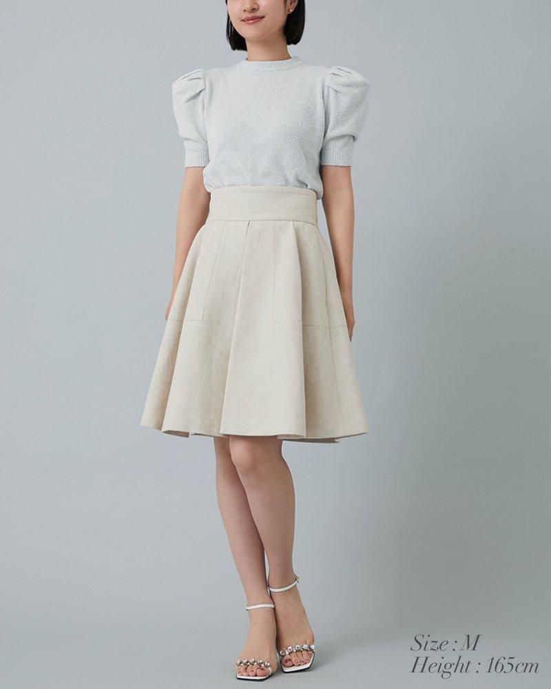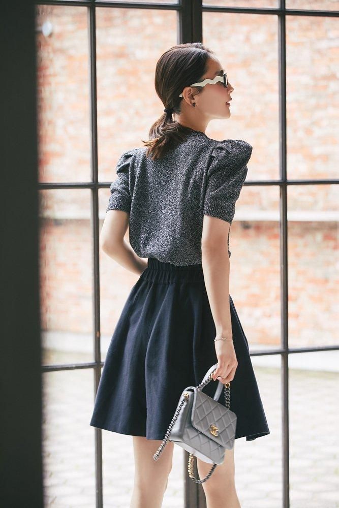 モード感のある立体的な袖とさりげないラメが品良く調和する絶妙なバランス感。